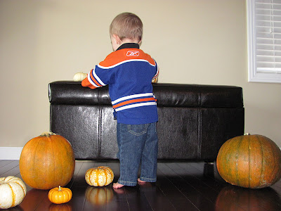 I had a few pumpkins set up for Jace to play with when he woke up from his nap. Such a fun morning with my little man!!!